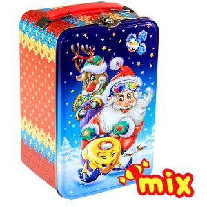 Самая большая и красивая новогодняя упаковка из жести и целый килограмм лучших конфет и сладостей.
