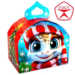 Красивая упаковка с символом года и конечно же любимые конфеты и сладости для самых маленьких.